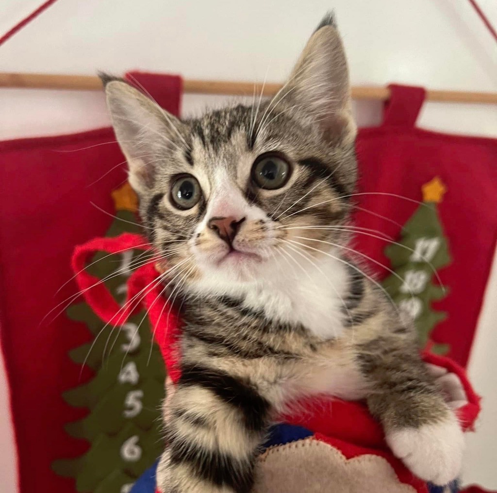 This handsome dude is Jerry. Jerry is as cute as a button, is super affectionate and loves human company. He is a food connoisseur who enjoys his meals. Jerry is a lot of fun and is a typical lively kitten, but still loves snuggles on your lap when he is tuckered out from playing! He is such a well behaved guy too for a little kitten.