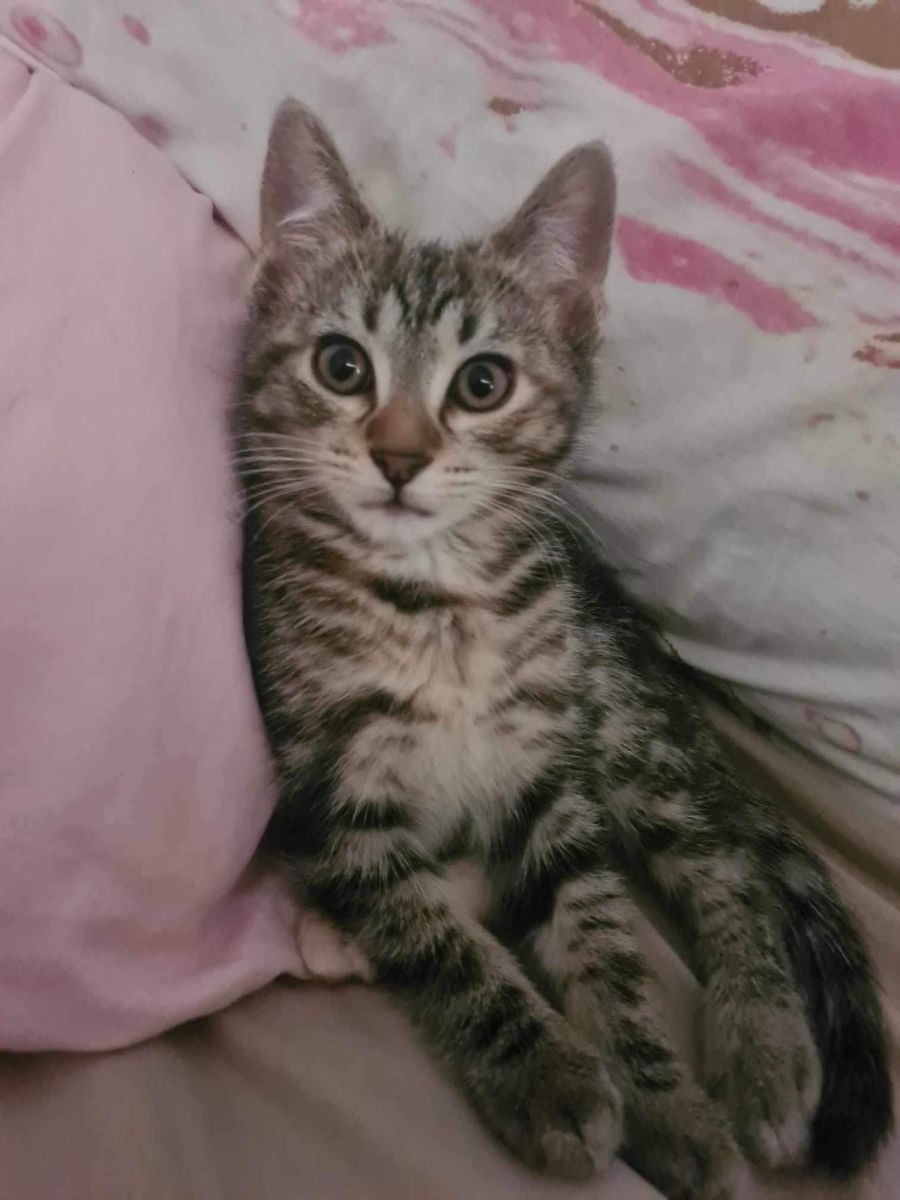 Loves her siblings, loves running around and playing with them and cuddling up with them she is often found sleeping with her sister Stormy. Would benefit going to a home with her sister or another cat. Good with cats and kids. Quieter then her siblings at first but once warmed up to you full of so much love. Loves to sit on top of you for cuddles and purrs with pats. Loves her toys and climbing the cat tower and loves to be in the same room as you.