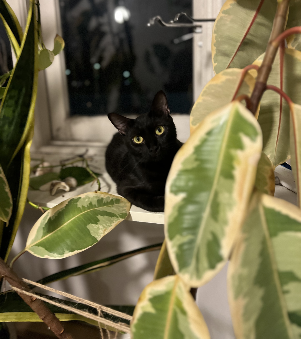 Cathay's sleek, black fur adds an elegant touch to her appearance, and her eyes, like golden orbs, tell a story of resilience and hope. She's a cat who appreciates the quiet companionship of humans and thrives on the bonds she forms with those around her.