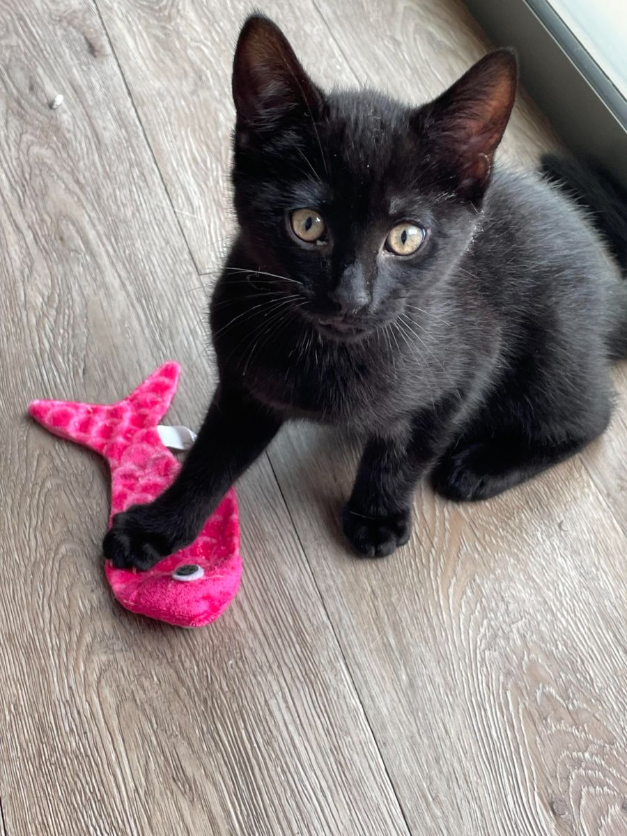 Steele is a typical kitten, he loves following the teenager around and attacking his feet, playing with toys or his siblings, eating and sleeping. He is the biggest and most confident of his litter and can often be found leading any mischief.