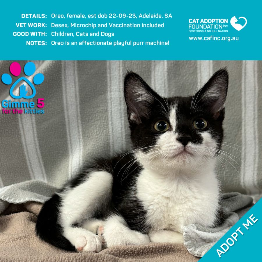 Donate to Oreo at Cat Adoption Foundation Incorporated via Shout