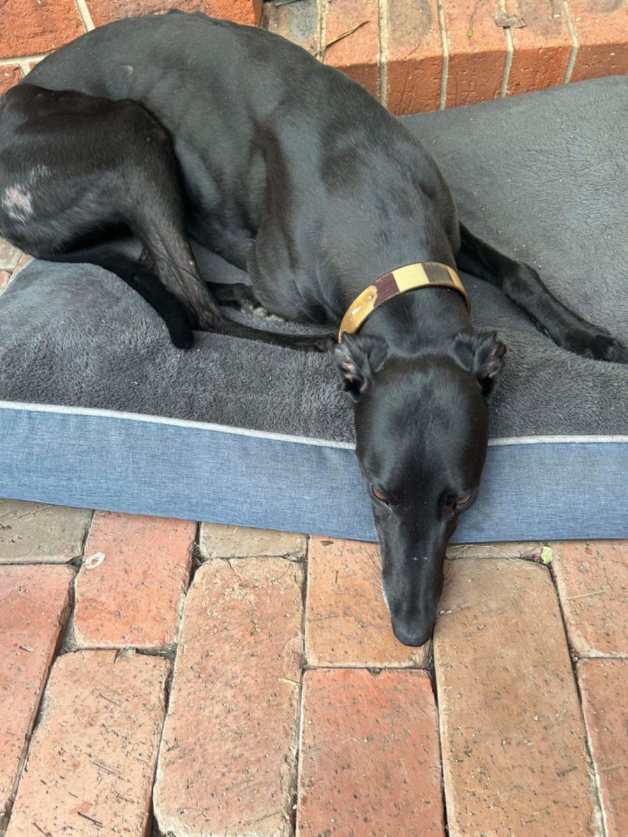 Cindy loves sleeping and is an inside/outside dog. Best suited to a family that can stay with her. Quick learner, very placid temperament.