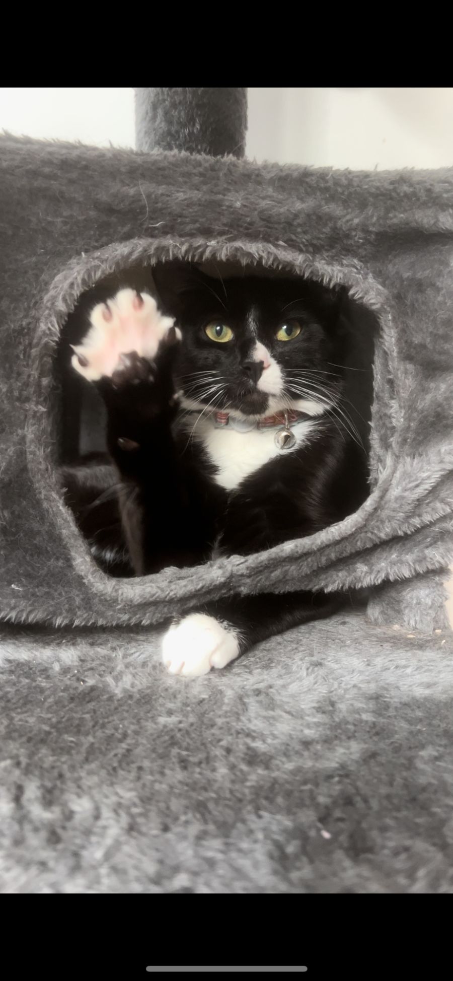 Renny is a great little night cat too. He is adaptable, quietly exploring the house on his own, or snuggling up in his cat tower beside your bed.