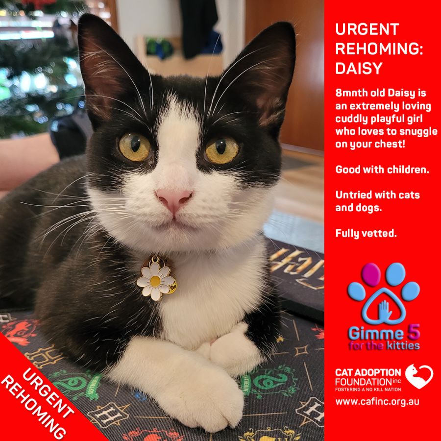 Donate to Daisy Private Rehoming No Charge! at Cat Adoption Foundation Incorporated via Shout