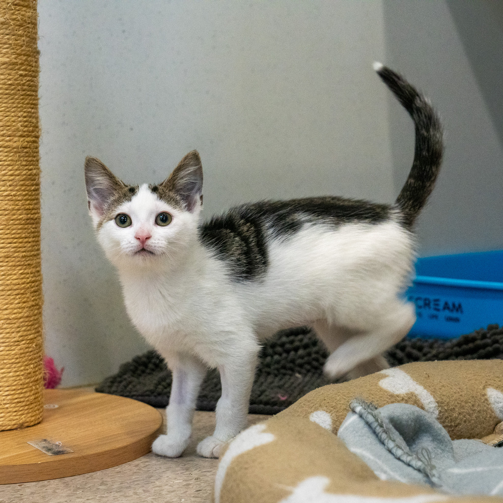 Hey there, I'm Magdalina. I'm a friendly and affectionate kitten who would suit most homes! My playful paws are always ready to pounce on anything that moves. I love playing with wand toys and mysterious shadows on the wall! When I'm finished playing, I love nothing more than finding a warm lap to curl up in.