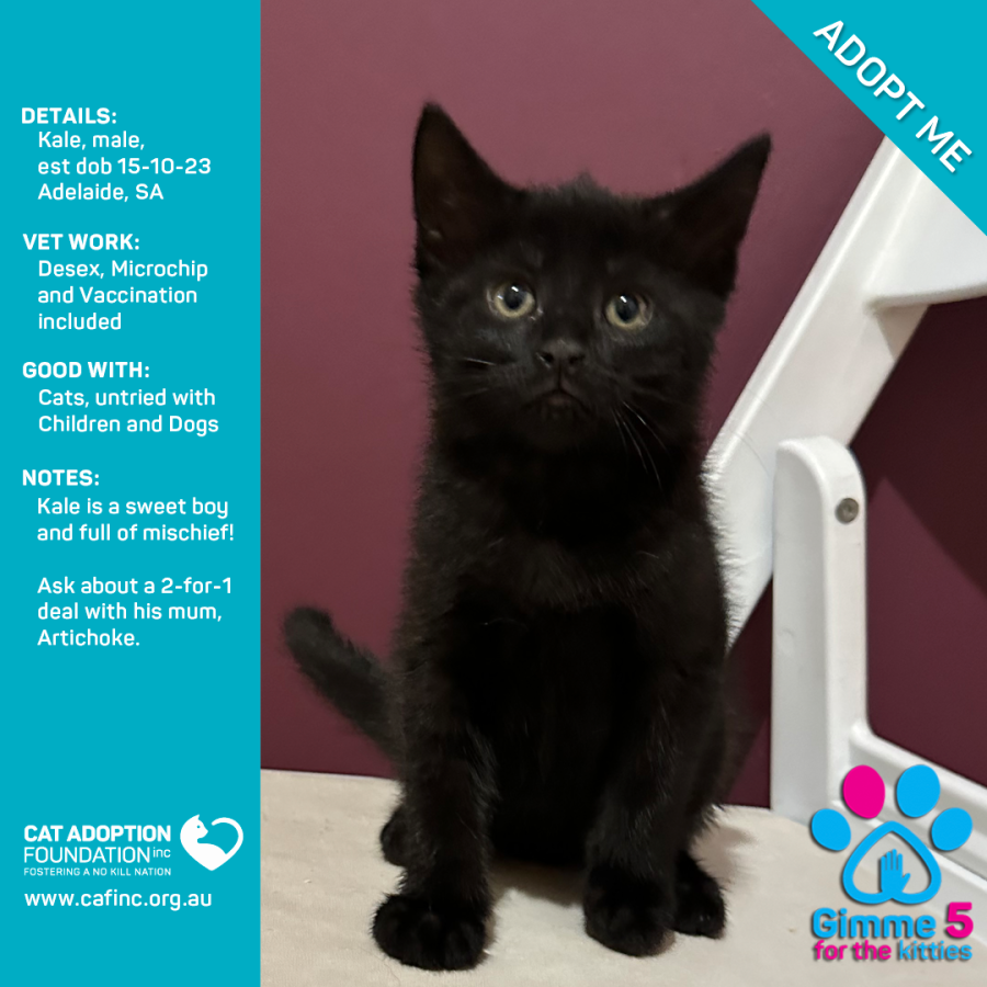 Donate to Kale at Cat Adoption Foundation Incorporated via Shout