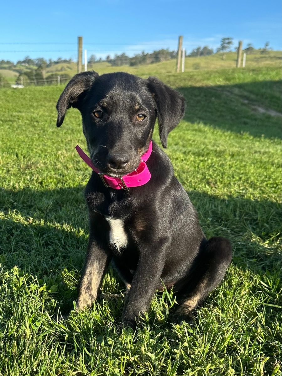 Hi my name is Prosecco, I’m a puppy female black and tan, Kelpie x Lab!