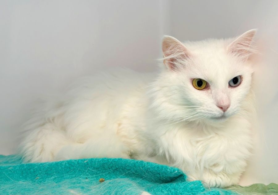 Pamuk wears a stunning coat with her white ears and a pink nose, she needs to be an indoor-only cat to protect her delicate skin from potential sun damage.