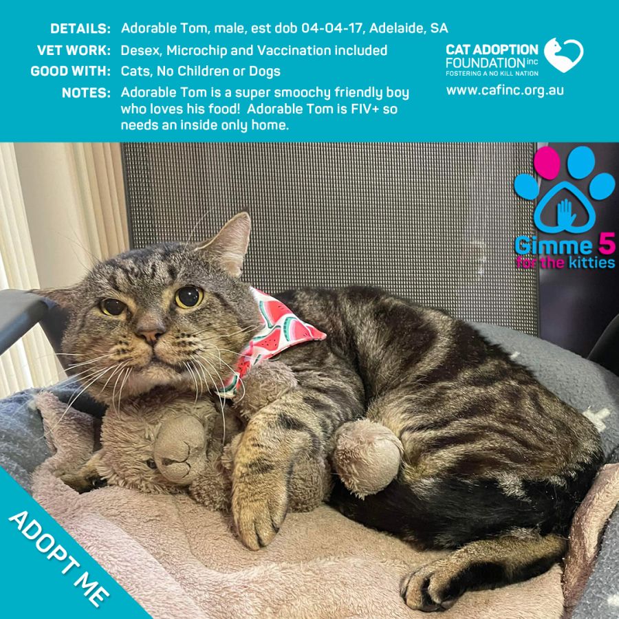Donate to Adorable Tom at Cat Adoption Foundation Incorporated via Shout
