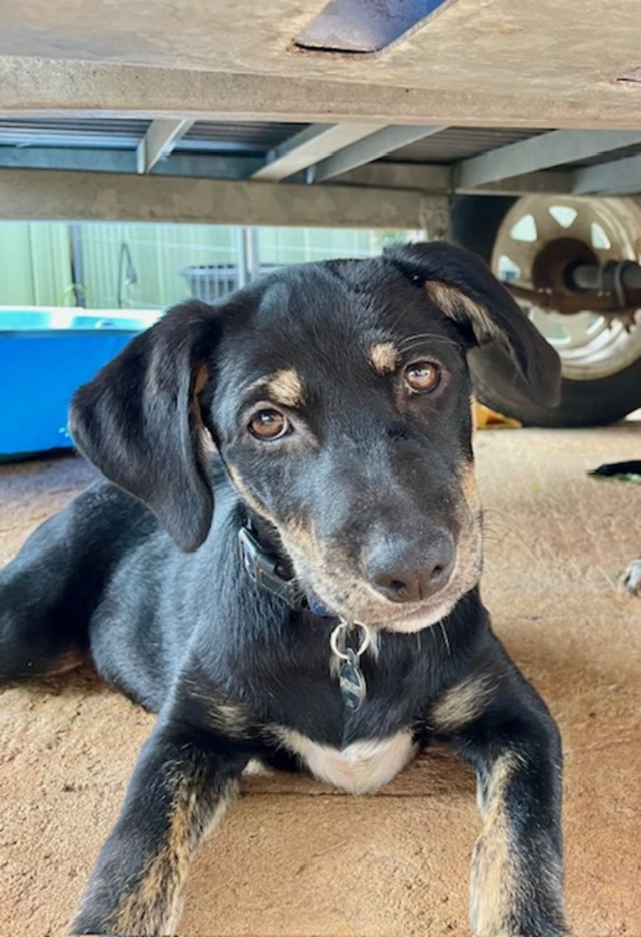 Bollinger is a happy 4 month old Kelpie x Labrador female pup who thrives on attention and is keen to please. She settled into her foster home quickly. Bollinger is easily entertained and loves her food and working for it.