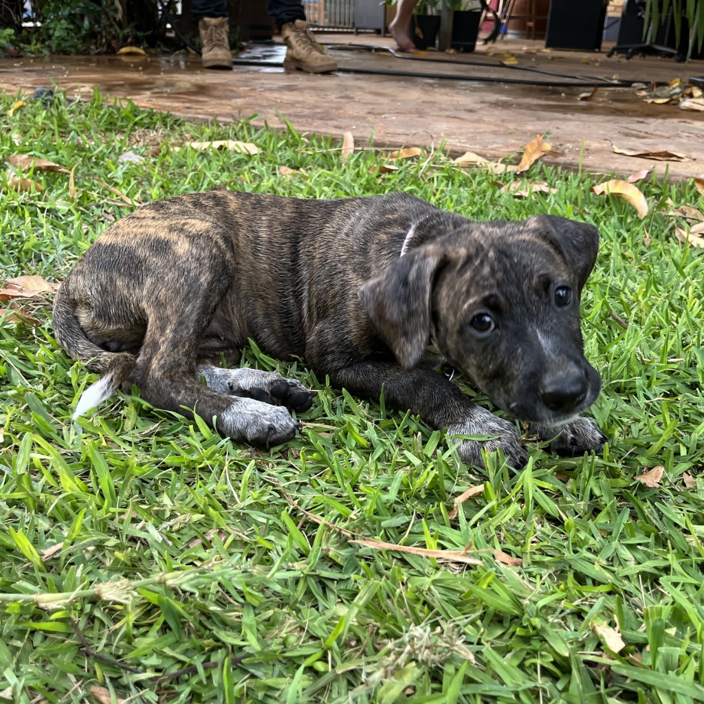 Hi! I'm Flake, Flake is the epitome of Good things come in small packages. She is loving, extroverted and gets along with all and sundry. A Pilbara special by lineage, she is a lovely young girl starting out in life and looking for love. Is that you? With her black and brindle coat and white socks and overall good looks she is beautiful and quiet. I mean, what’s not to like? As a bonus almost she is good with other dogs and loves kids. She is good with her toileting and eats whatever is put down for her. You can see she is not fussy. When asked to describe her in one word, her carer said “ever-ready” which in dog lingo means fun! She is good company. Flake might only be little and young, but hey, she learns fast. She is looking for a loving home that would appreciate her. She has some basic commands and would benefit from further training. If you would like Flake in your life and are patient whilst she learns, Apply to adopt today!