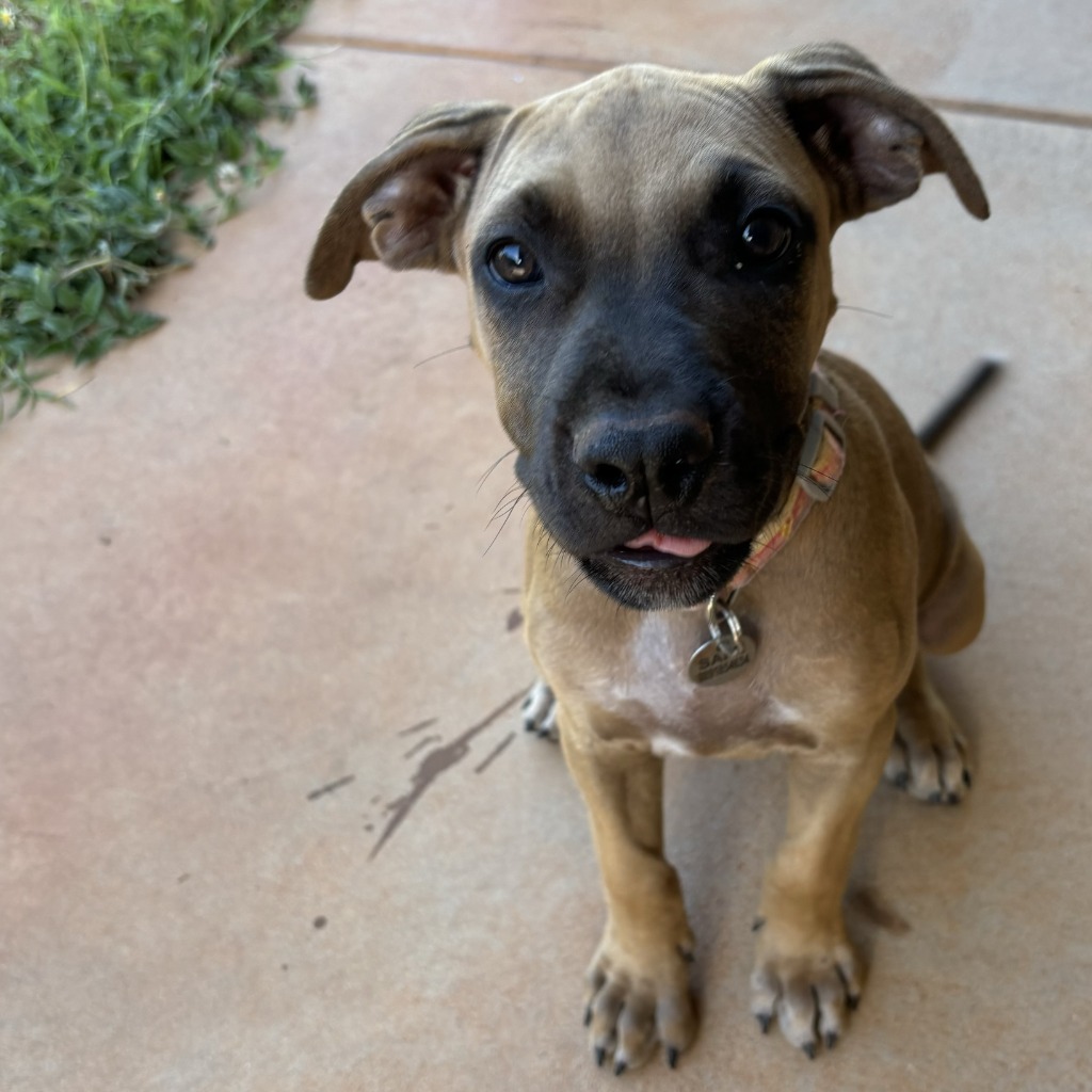 Hi there! Nice to e-meet you. I’m Freya and if you’re looking for a playmate for your four legged friend at home, I think I might be your girl. My foster family have dogs and I absolutely love playing tug-o-war with them, running around outside and just laying with them in the yard. I also like humans because they teach me tricks, give me back rubs and reward me with yummy liver treats. But dogs are definitely my favourite for playing and fun. I’ve learnt lots from the older dogs I live with and I’m a very good girl. I’ve still got a little bit to learn and am slowly getting comfortable with water. I’m curious and fun and I hope to me my new family very soon.