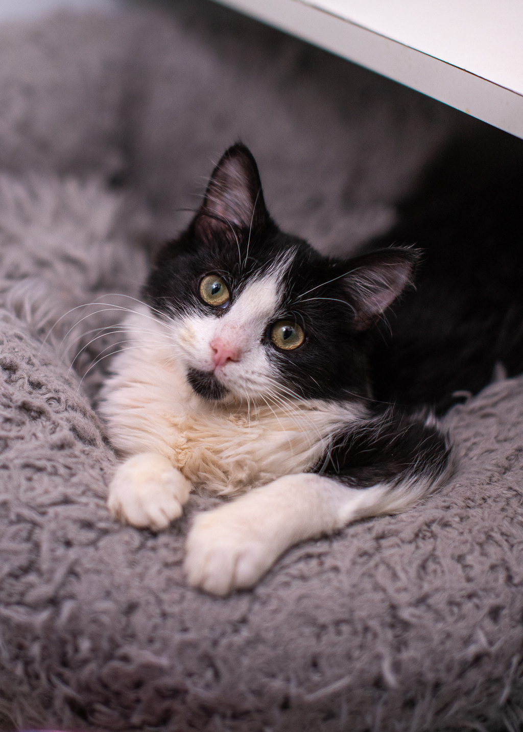 Meringue has shared kittenhood with fellow feline friends both in her previous home and during her time in foster care. She has mastered the art of navigating feline friendships and is confident enough to live amongst other pets in the home too. Whether you already have a fur family or plan to introduce her to new companions, she's up for the challenge.