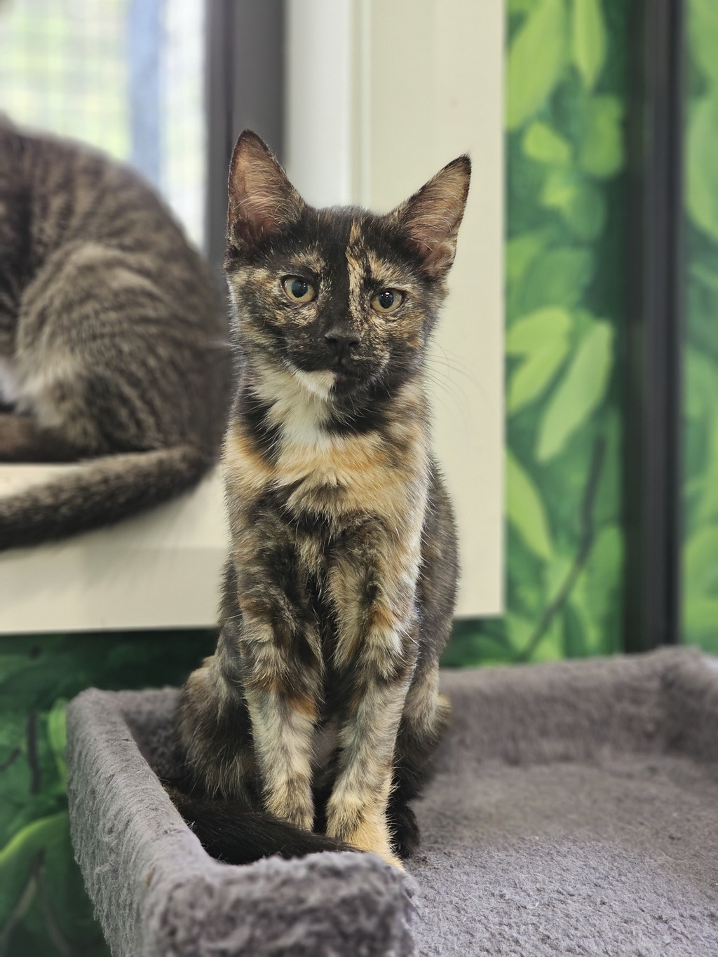 Hey there, I'm Duchess. I'm a friendly and affectionate kitten who would suit most homes! My playful paws are always ready to pounce on anything that moves. I love playing with wand toys and mysterious shadows on the wall! When I'm finished playing, I love nothing more than finding a warm lap to curl up in.
