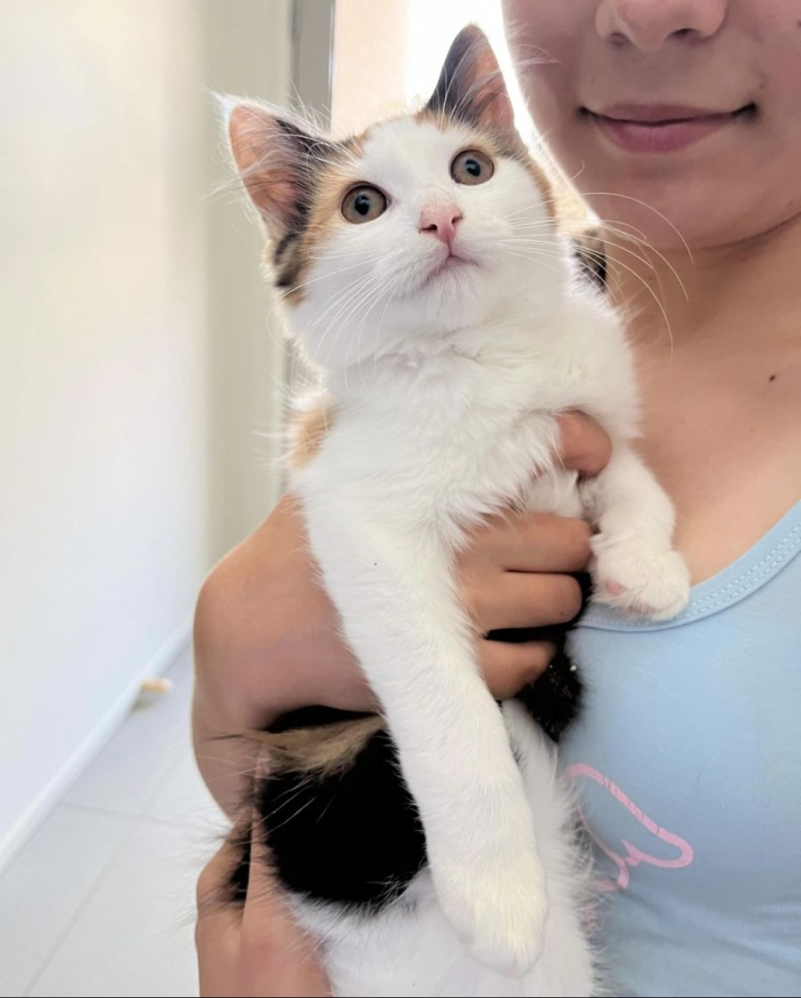 Calle loves a cuddle, to be picked up and has the cutest little purr! She would make a beautiful addition to all loving homes.