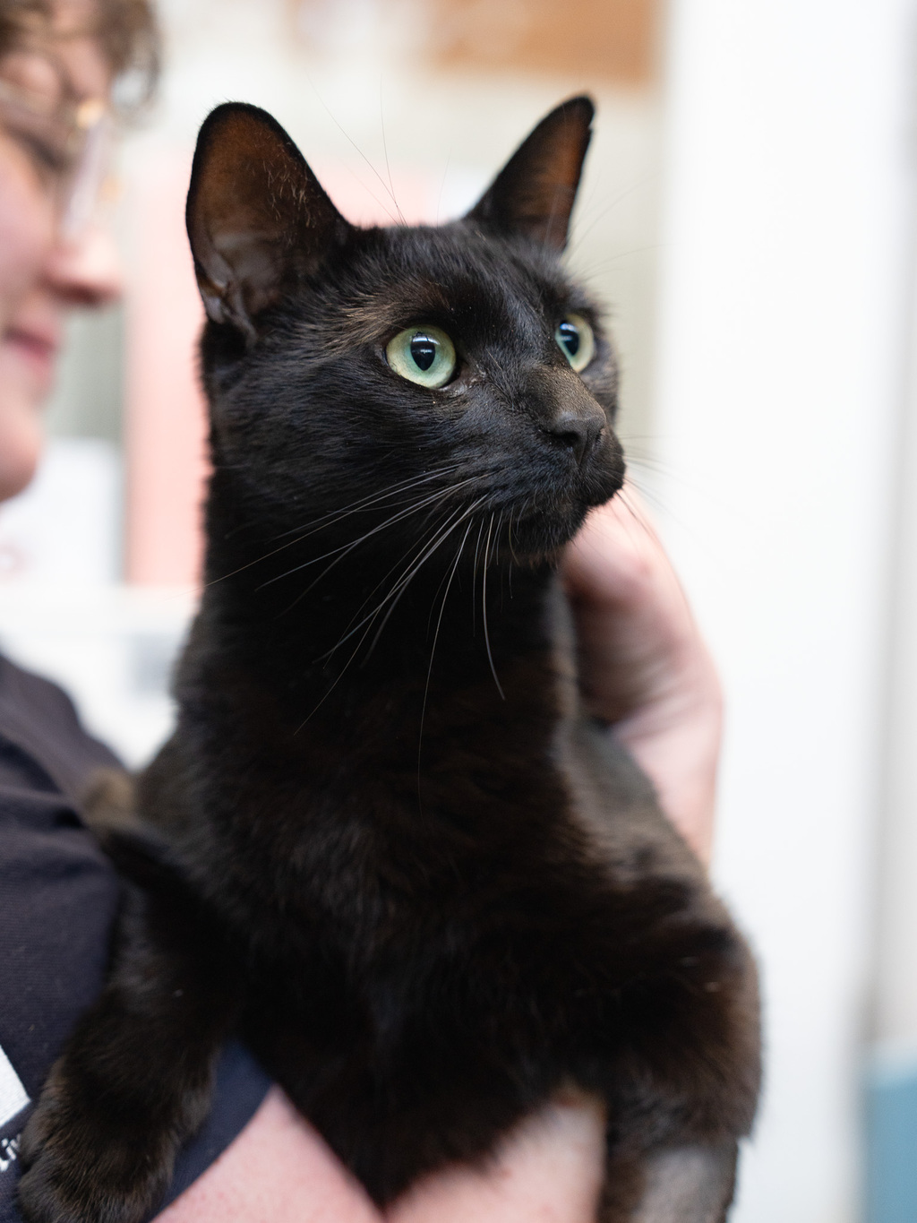 Taco is not your average cat; he's a charismatic feline friend with a heart of gold. This large, social kitty has a penchant for chirping, making him an excellent conversationalist. His mesmerizing eyes and sleek black fur make him a true stunner.