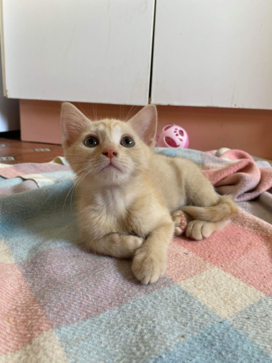 Worm is a 10 week old Female Champagne & White Domestic Short Hair Kitten.