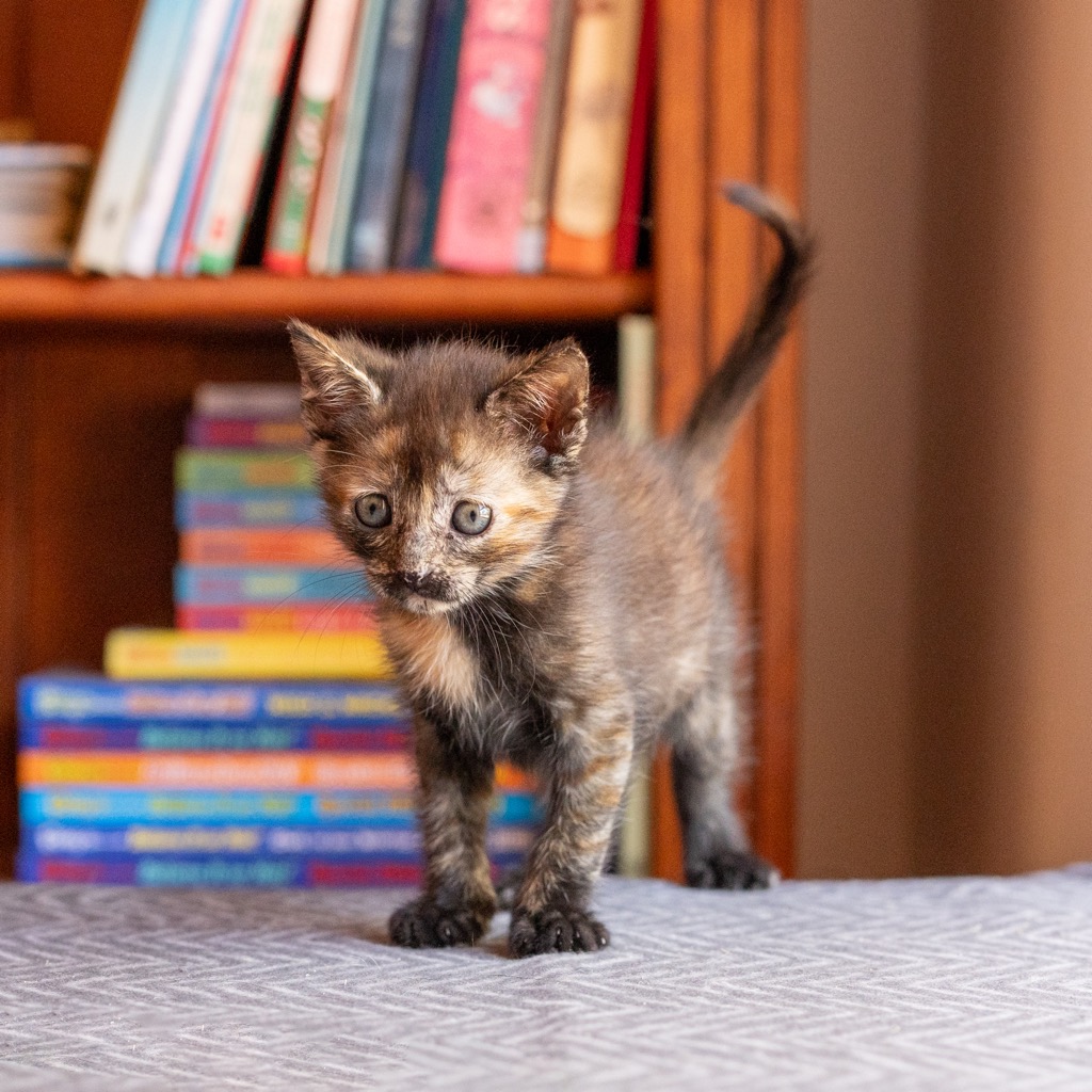 Meet Fae! She is a delightful girl! Like all young kittens she is playful and inquisitive. Her personality is just starting to shine through. She is looking for a new home to love her unconditionally! Could it be you?