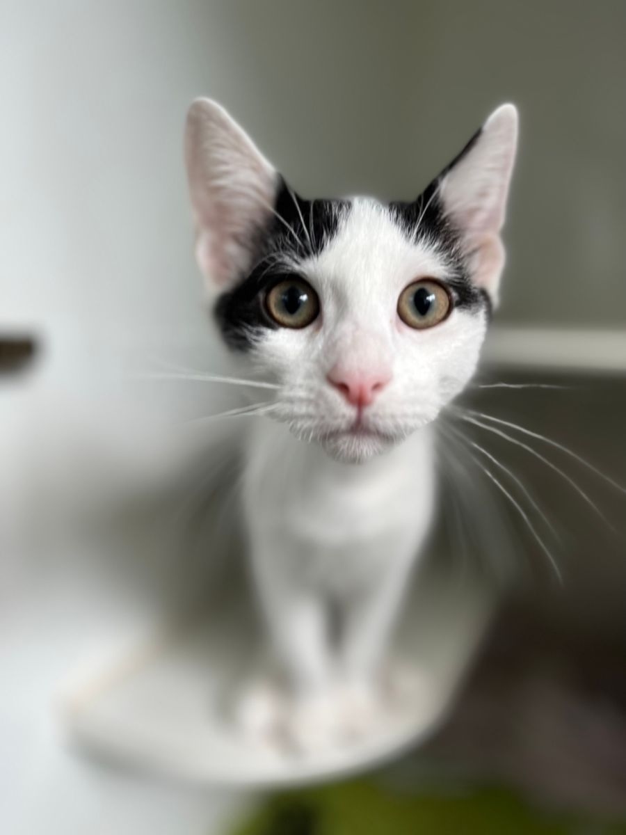 Introducing Binx, a charming black and white cat who is a super smooch!