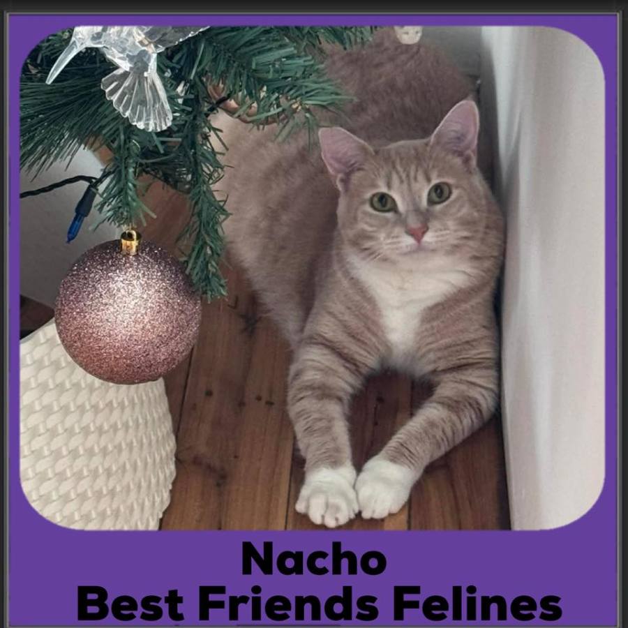 Nacho loves the other cats she lives with and would love another friend to play with but would also be happy as an only cat where she gets all the attention.
