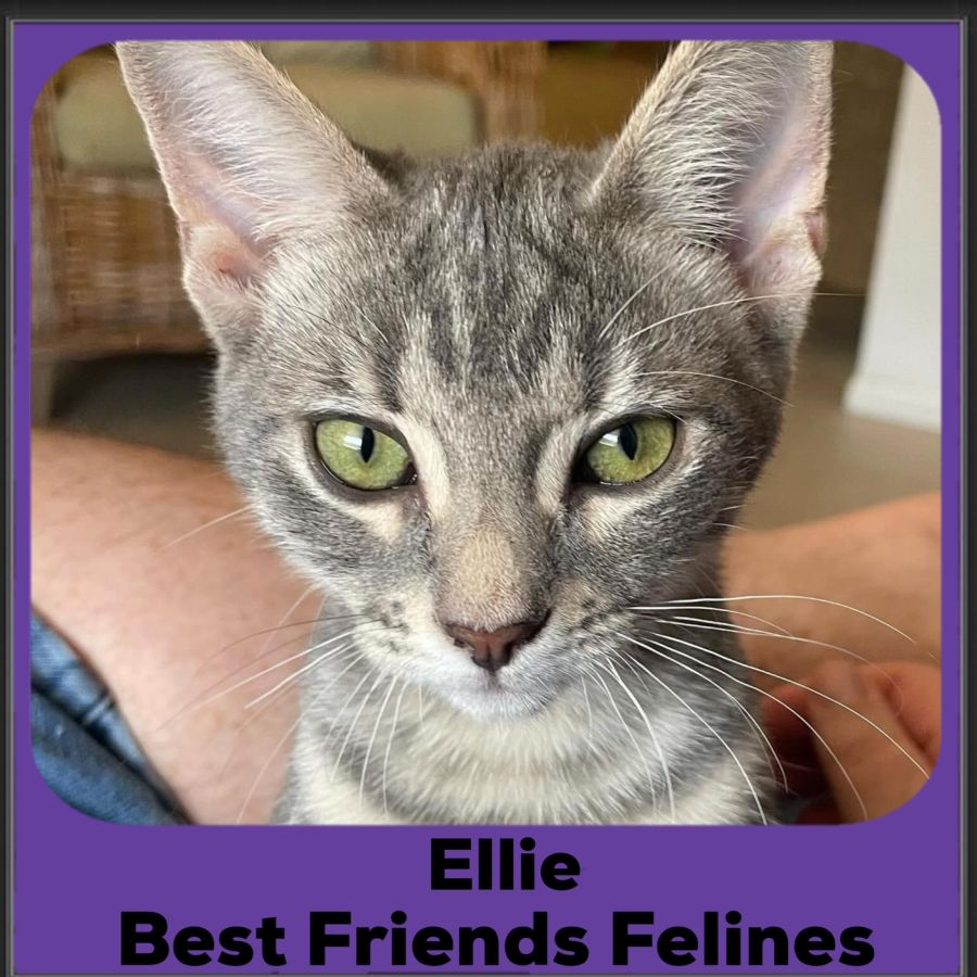 Ellie is a gorgeous little grey tabby who came into care with her brother & mum when she was about 10 weeks old. She is definitely a survivor, showing sass and independence at a young age. Ellie loves to climb, jump and explore, inevitably finding mischief along the way!