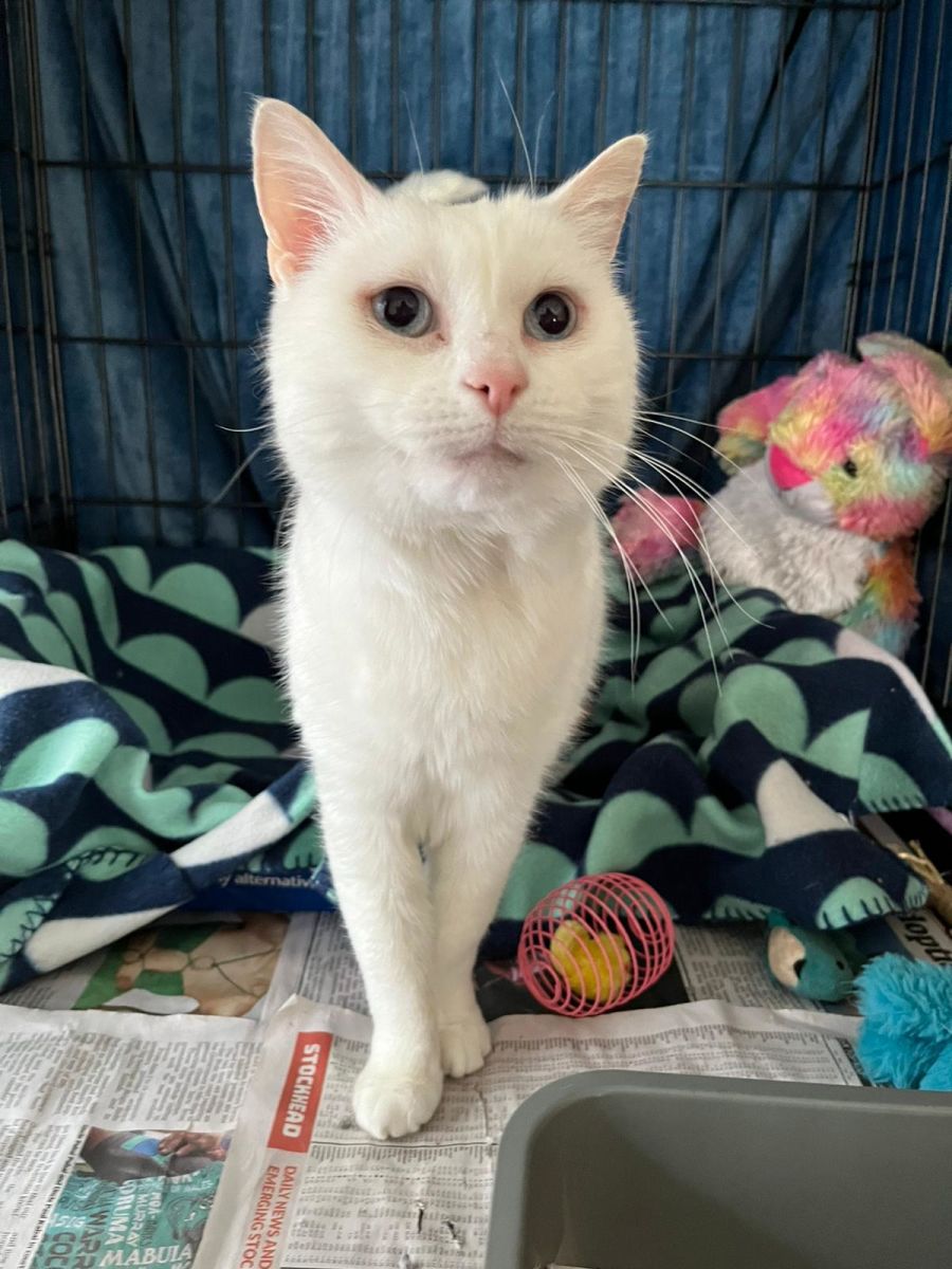 Tinkerbell’s exact age is unknown but she is thought to be around 11 years old according ti her microchip records. The vet suspects that Tinkerbell is partially deaf.