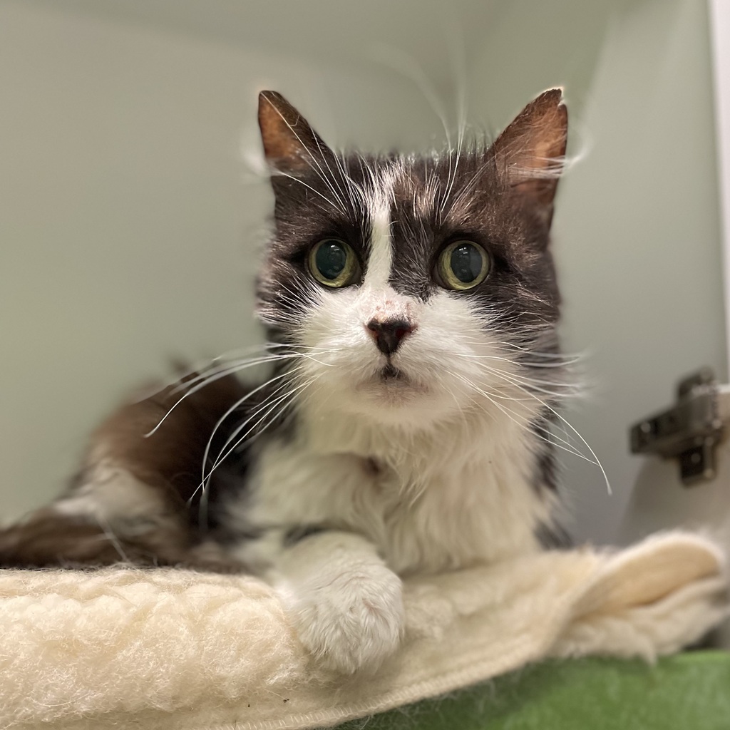 Gracie is a sweet older lady that enjoys gentle chin scratches and snoozing. She hasn't had a great previous life and would love a soft cushion to snuggle on. Best suited to a home with no other cats, or younger children.