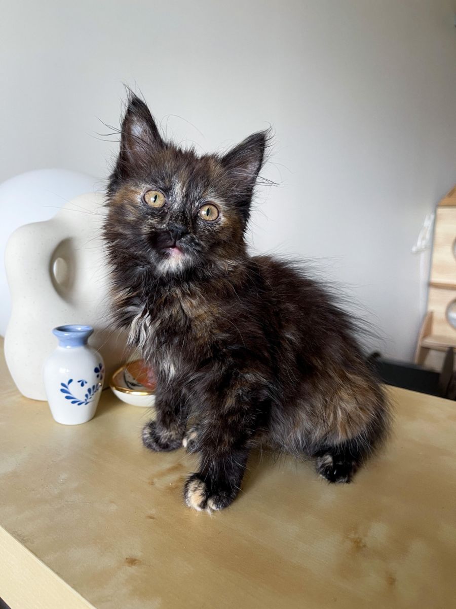A graceful feline with a serene disposition that adds a touch of tranquility to any space. Giselle's distinctive feature is not just her luxurious, long coat but also her quiet and introspective nature that sets her apart from her more spirited siblings.