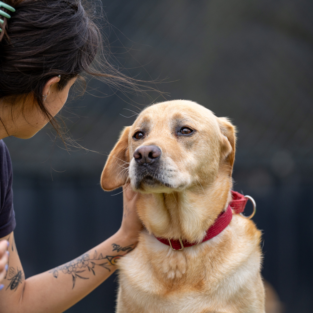 Hi there! I'm Patch, I'm a Labrador known for my incredibly soft ears and an innate ability to offer the warmest cuddles imaginable.