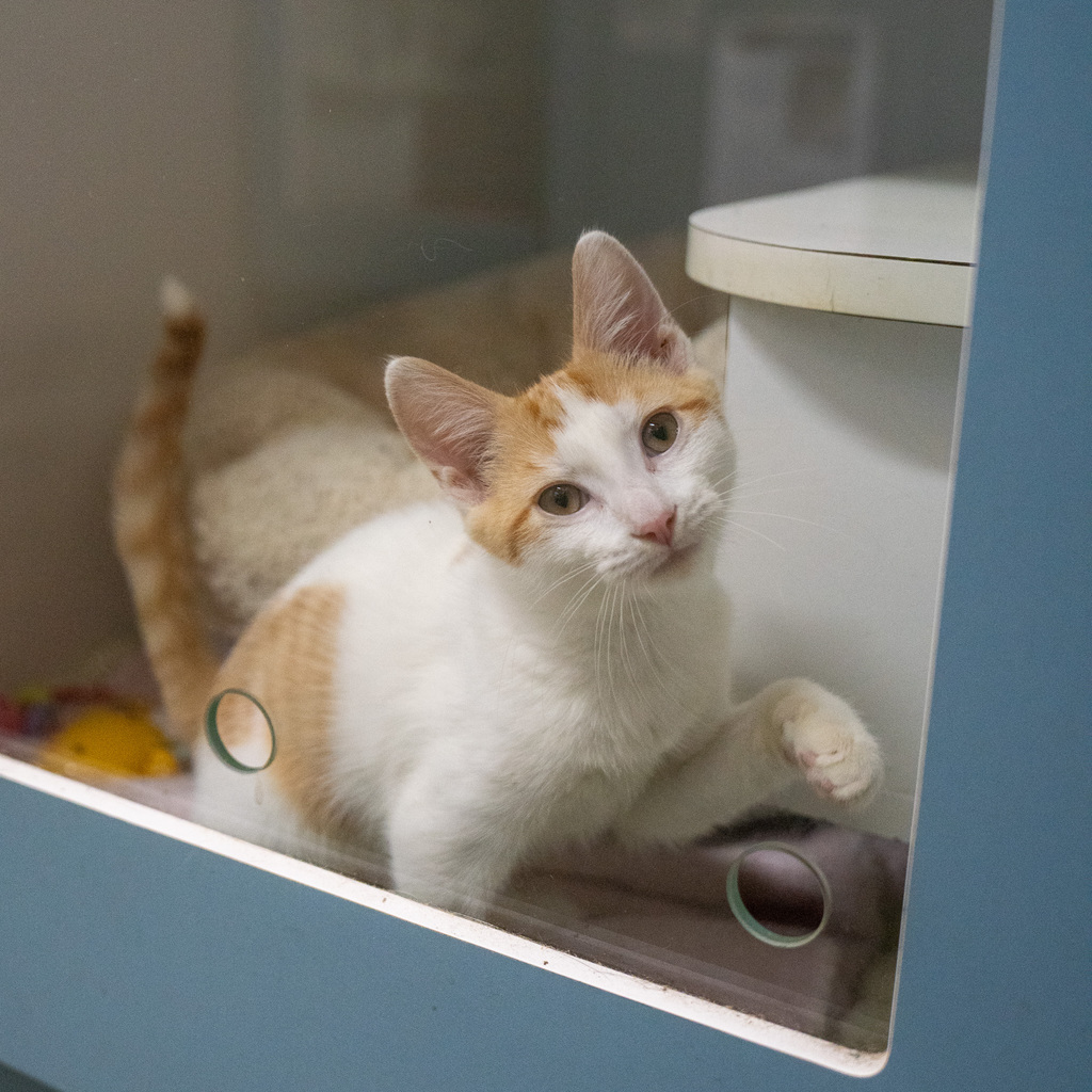 Meet Snack Pack, the bundle of energy waiting to add joy to your home! This crazy, energetic kitten is always full of beans, ready to turn any moment into a playful adventure. Snack Pack is still mastering the art of appropriate play and would thrive with a savvy owner who can guide him on this exciting journey. If you're looking for a lively companion and are up for the challenge of helping Snack Pack become the best adult cat he can be, this spirited feline is the perfect addition to your family!