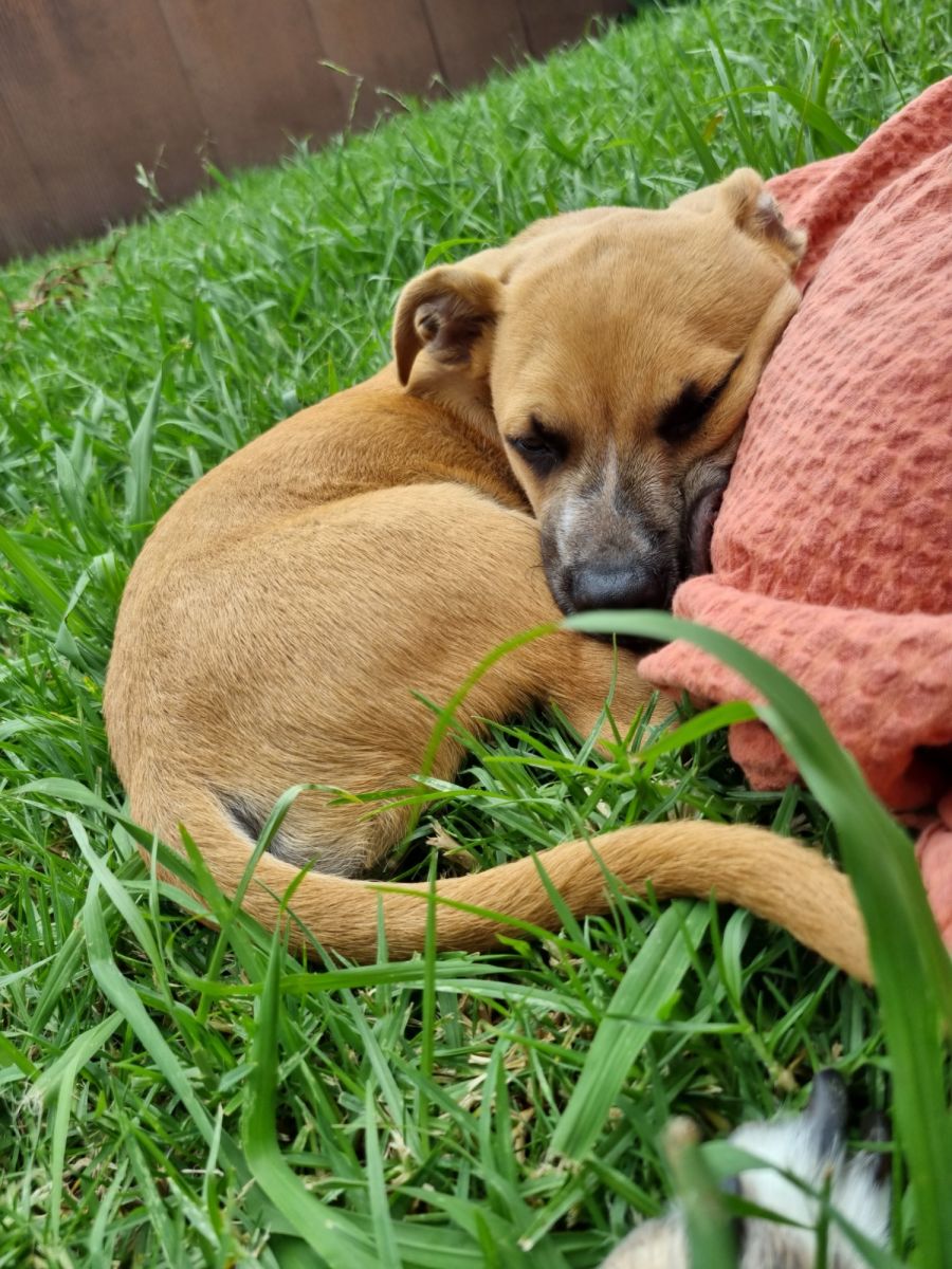 Surprisingly, Louie sleeps through the night in his crate with no problems and has started his toilet training successfully. He knows to pee and poo outside, only when foster mum isn't quick enough there might be a little accident.
