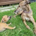 He is a smart pup, loves his belly rubs and browsing in the garden. Louie is living with his foster greyhound sisters and he has been annoying them with his puppy crazies, but after some time, he now respects their space.
