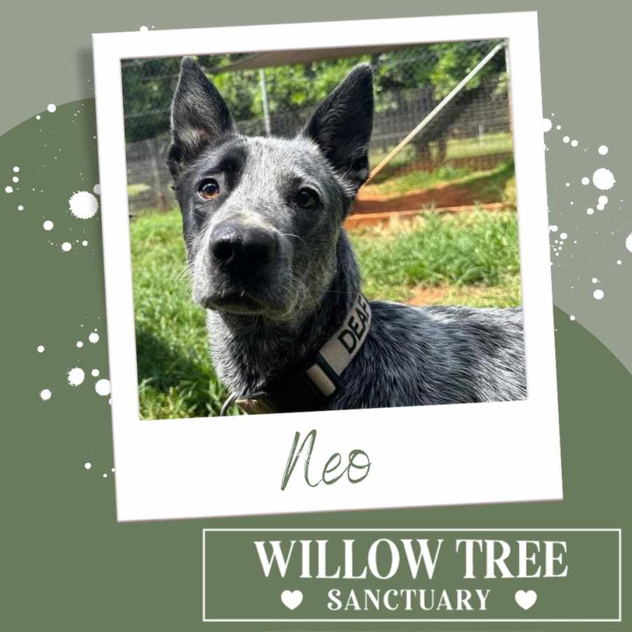 Introducing Neo, an adorable male Cattle pup. Neo is a bundle of joy who simply adores everyone he meets. His friendly and outgoing nature makes him the life of the party, and he will instantly win over the hearts of anyone lucky enough to cross his path. Neo's fun-loving personality shines through in everything he does, and he is always up for an adventure or a game of fetch.