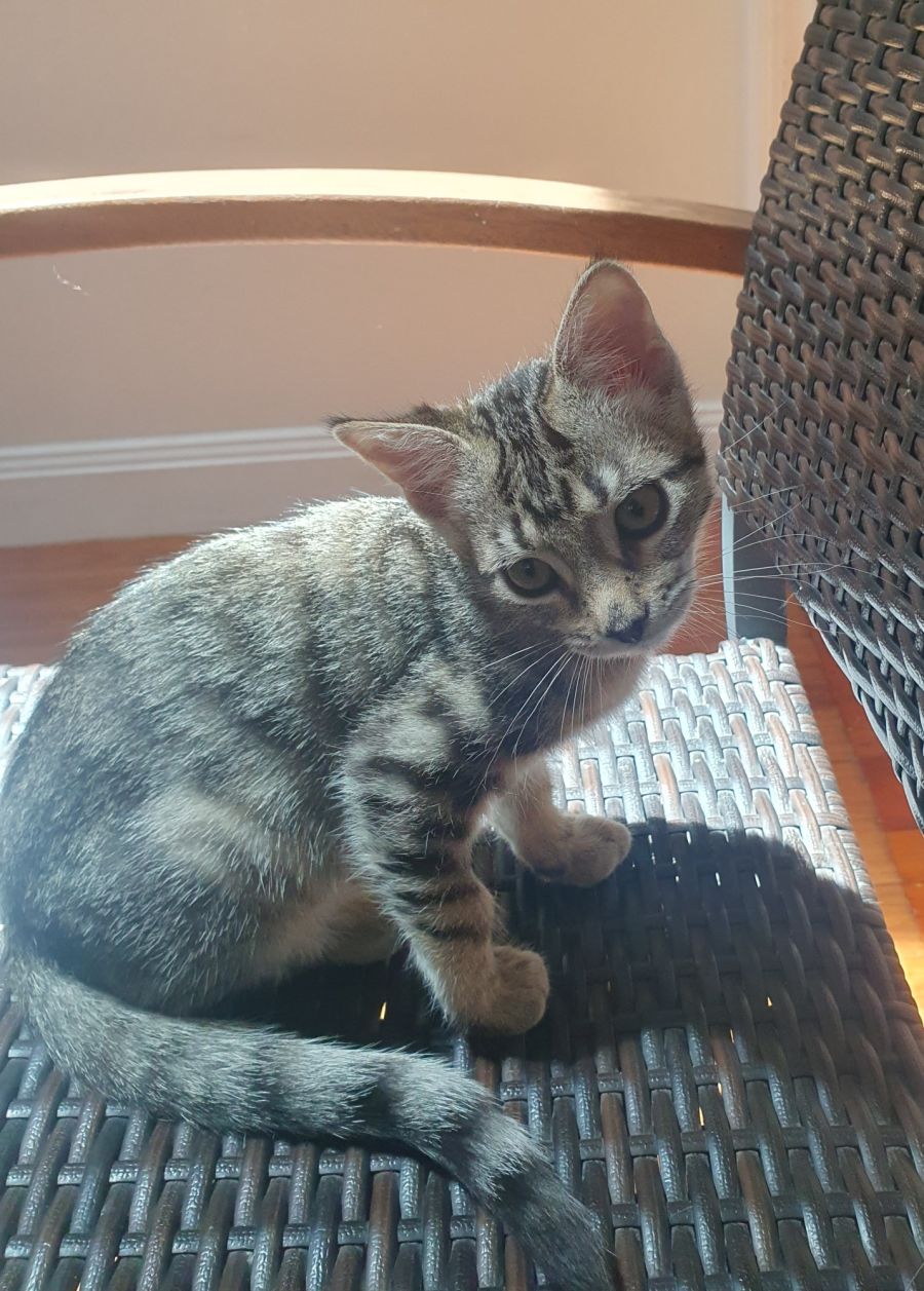 Meet Hazel, an adorable kitten with beautiful tabby markings and natural eyeliner. She loves to play and she is a bundle of energy.