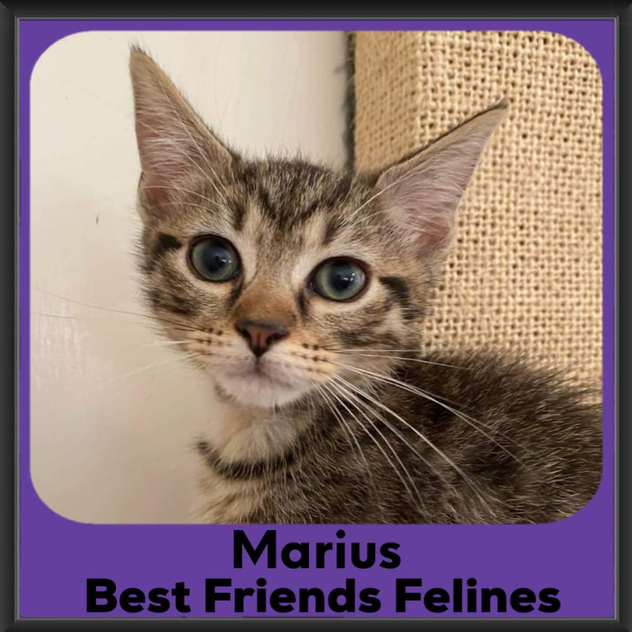 Hello, my name is Marius, and it’s a pleasure to meet you! One of two boys in a litter of six almost-identical kittens, Marius takes great delight in his surroundings and playing with his siblings before tucking in to his dinner. A sweet lad with a heart of gold, Marius will happily scamper about all day, charming all who meet him.