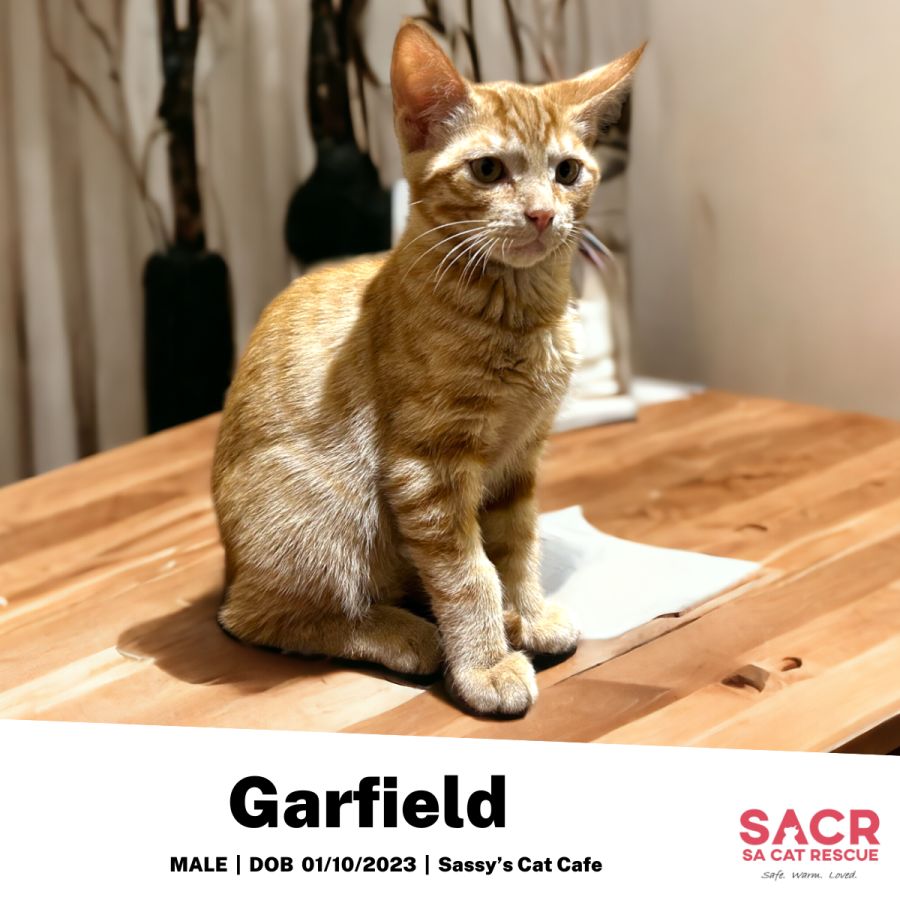 Garfield’s adoption fee is $180 which includes desexing, microchipping, parasite prevention, and initial F3 vaccination.