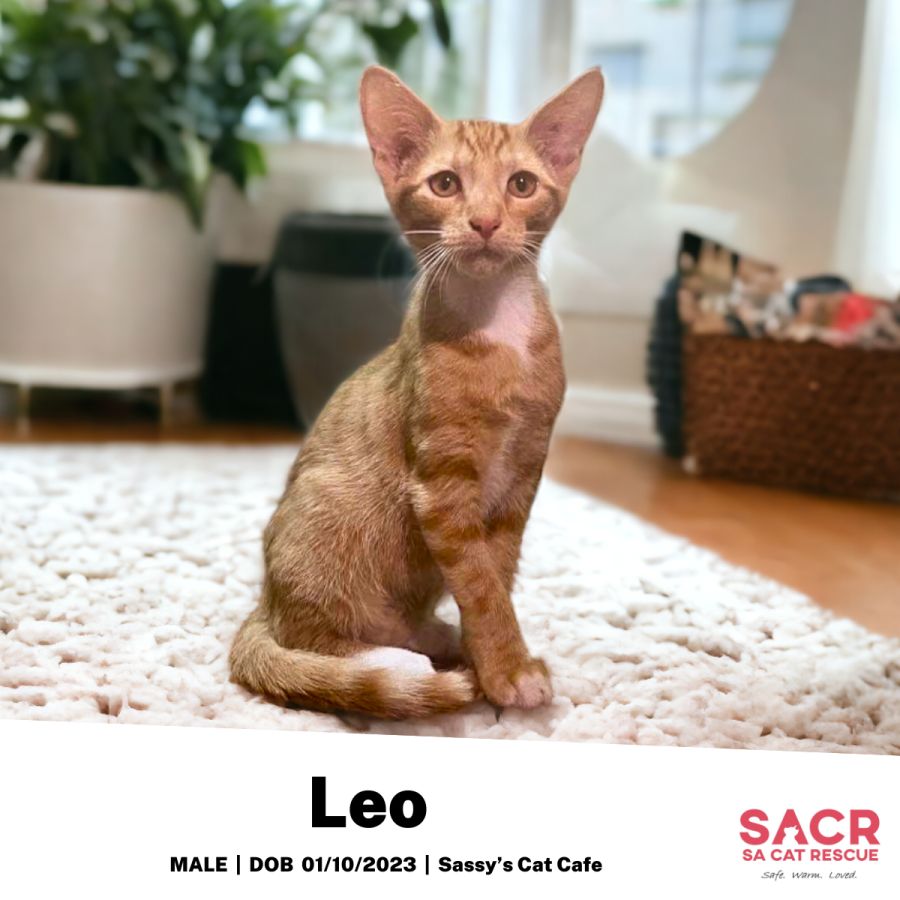 Leo’s adoption fee is $180 which includes desexing, microchipping, parasite prevention, and initial F3 vaccination.
