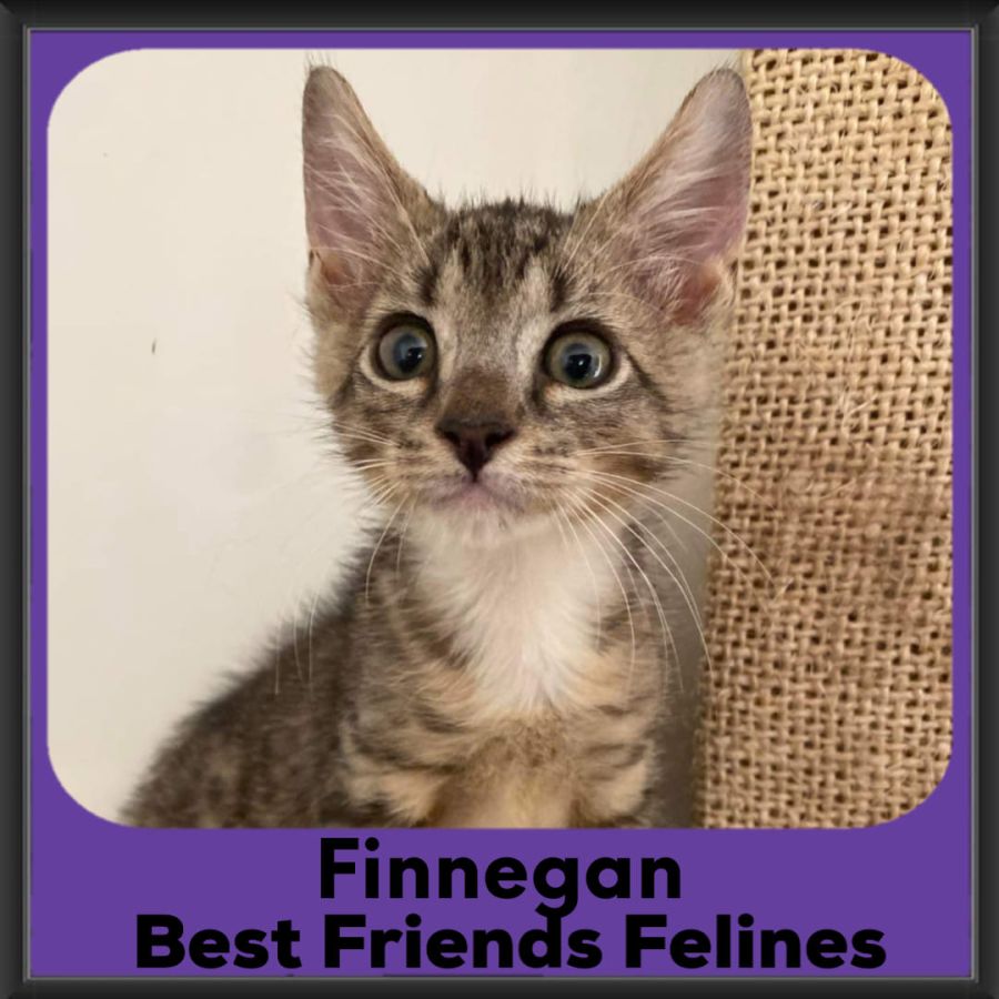 Ohh sweet Finnegan, you are a charmer! Finnegan is a darling young lad with a good natured personality and energy to burn. Currently, Finnegan enjoys a range of hobbies, including but not limited to: snuggling, cavorting around the room, cuddling feet, playing with all sorts of toys, and tucking in to a hearty dinner (chicken is his favourite). Finnegan plays well with his siblings and is friendly; he would suit a range of household types.