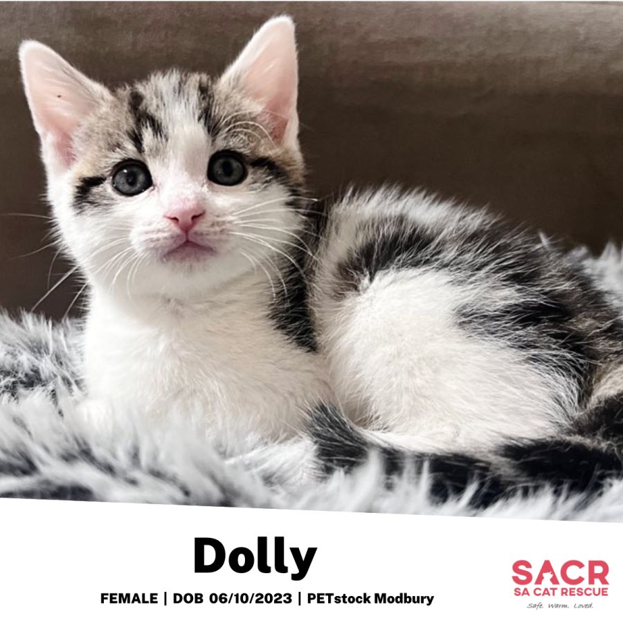 Dolly’s adoption fee is $180 which includes desexing, microchipping, parasite prevention, and initial F3 vaccination.