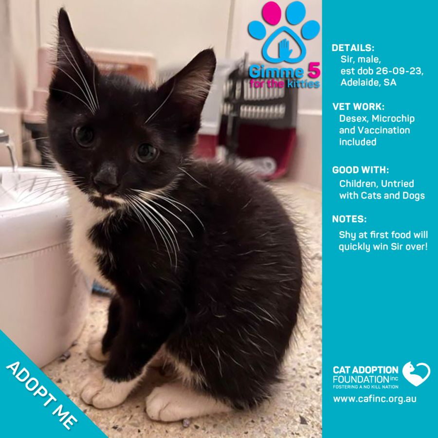 Donate to Sir at Cat Adoption Foundation Incorporated via Shout