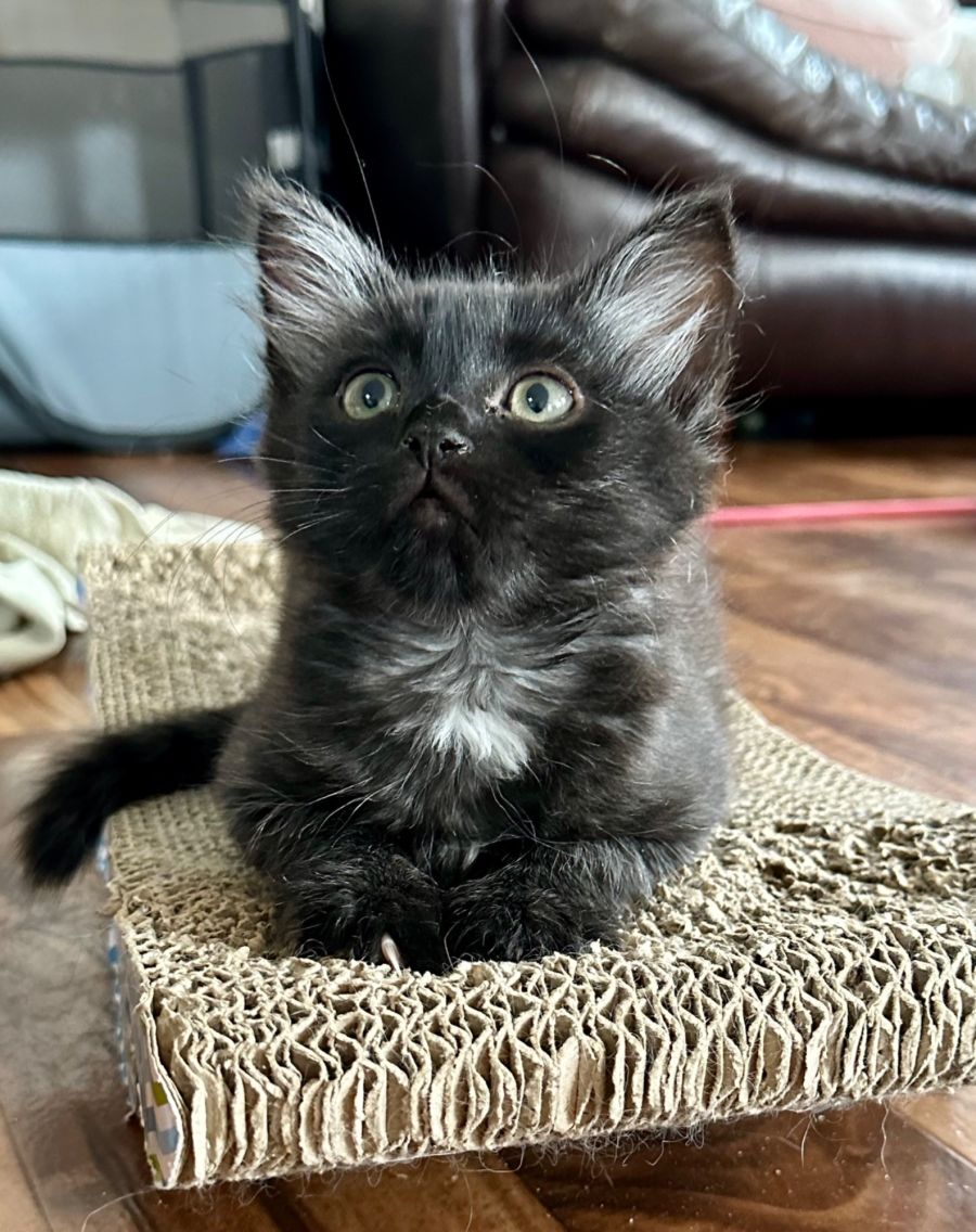 Meet Panther, a fluffy ball of joy! This sweet, black kitten has the loving nature of a lifelong companion coupled with the playful charm of a young feline. Raised since kittenhood on a bottle, Panther has developed an extraordinary level of affection, seeking those lovable cuddles in your arms.