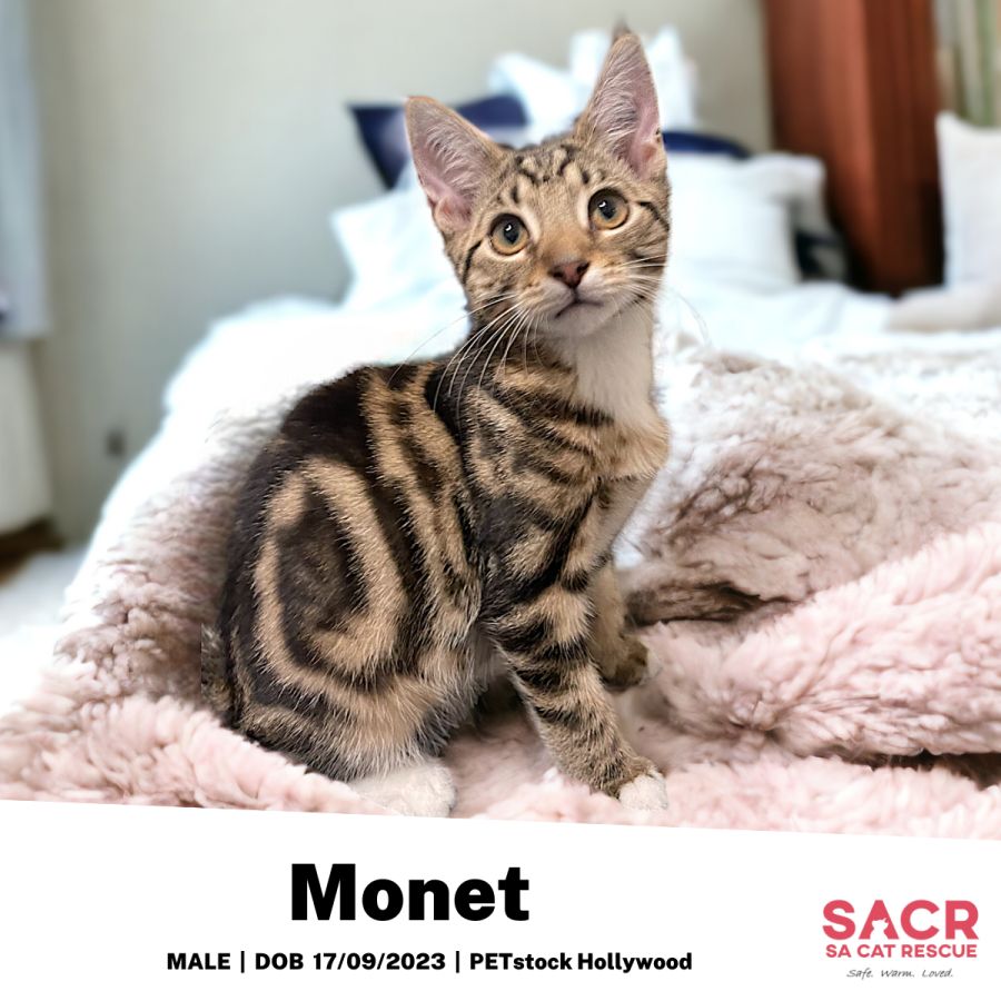 Monet is searching for a loving and understanding home, ready to be patient with his settling in process. In return, he promises a colorful presence that will indeed make your everyday life feel like a beautiful art.