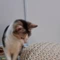 Once she feels safe, her personality starts to shine. She’ll meow excitedly when it’s mealtime and comes running the moment you shake the treat bag. She enjoys being near her people, hanging out in the same room as you and you can even give her gentle pats while she eats. While she’s not a lap cat, she shows her affection in quiet, subtle ways.