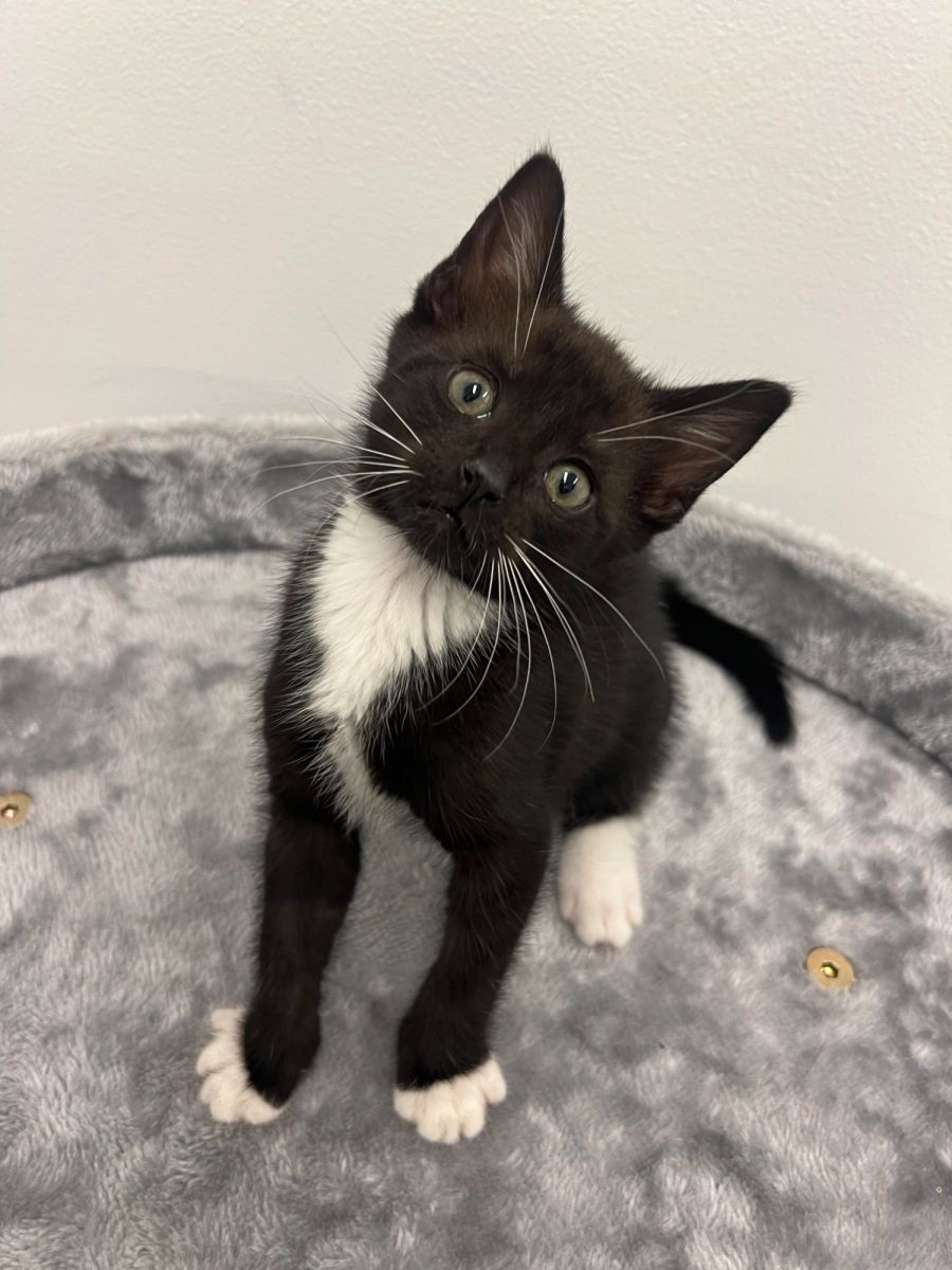 Introducing Dumpling, the black and white dynamo ready to add a touch of excitement to your home! This adventurous kitten is a bundle of energy, always up for a playful escapade. Dumpling is not only a wild and spirited explorer but also a chatty companion, ready to share her thoughts and musings with you. Her lively personality is as bold as her distinctive markings.