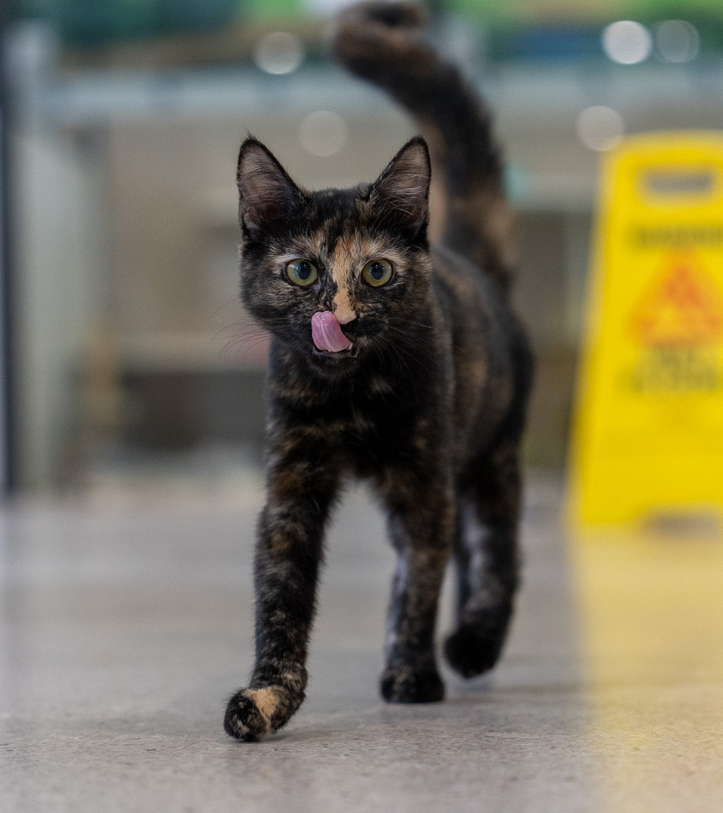 Quantas, with her unique fur pattern, is a visual delight. She is a playful whirlwind of energy and her kittenish exuberance is infectious.