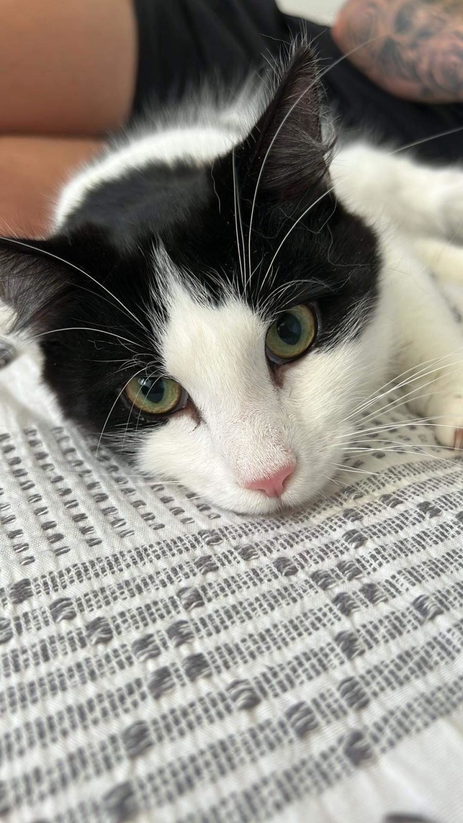 Meet Louie, a charming one-year-old Domestic medium Hair with an impressive black and white coat. Louie is a character who brings joy and happiness wherever he goes.