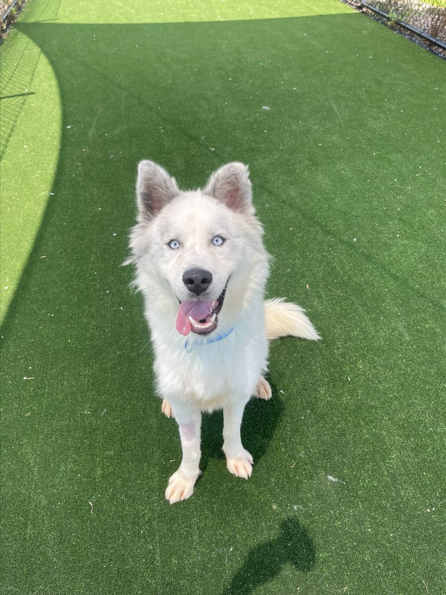 Aspen particularly enjoys exploring the world around him. Whether it's getting a bit pully on lead at the excitement of a new adventure, doing adorable zoomies around the park when overjoyed, or wagging his big, fluffy tail at the sight of a pond or pool, Aspen embraces every opportunity with gusto.