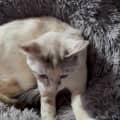 Meet Celeste, a cat whose beauty is matched only by her affectionate nature. Resilient and graceful, Celeste outshines all with her creamy fur adorned with unique bolts of colour, each shade adding to her exquisite charm.