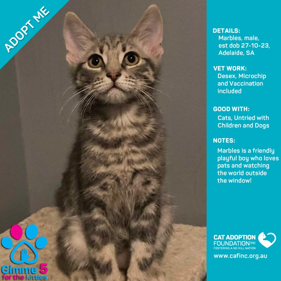 Donate to Marbles at Cat Adoption Foundation Incorporated via Shout