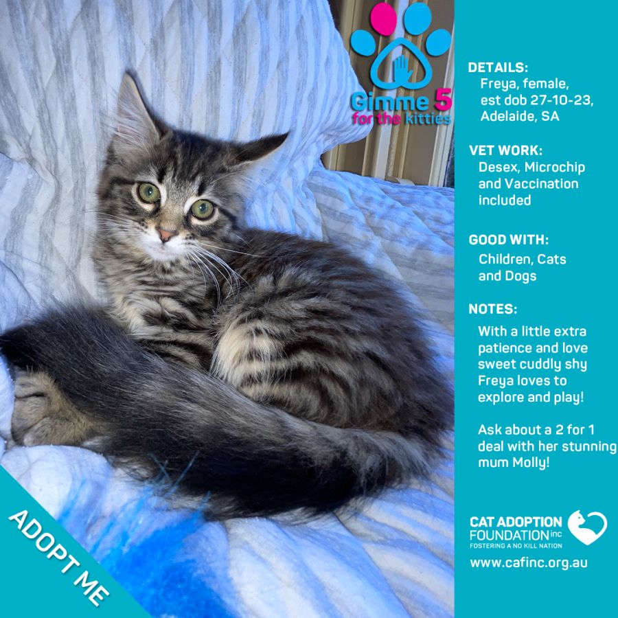 To adopt this kitty please contact Sayla on 0422 652 837 or email us at info@cafinc.org.au.